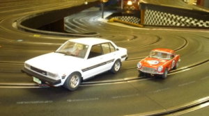 左の2台はフェアレディZ432で、フジミとハセガワ。並べると全然違います。
